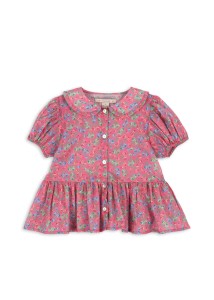 Delikatna bluzka dziewczęca od Konges Sløjd to połączenie klasycznego wzornictwa i ekologicznej tkaniny. Wykonana z certyfikowanej bawełny organicznej GOTS, jest bezpieczna dla skóry dziecka i przyjazna dla planety. Ozdobny kołnierzyk oraz falbanki nadają całości subtelny, elegancki charakter – idealny zarówno na co dzień, jak i na specjalne okazje.