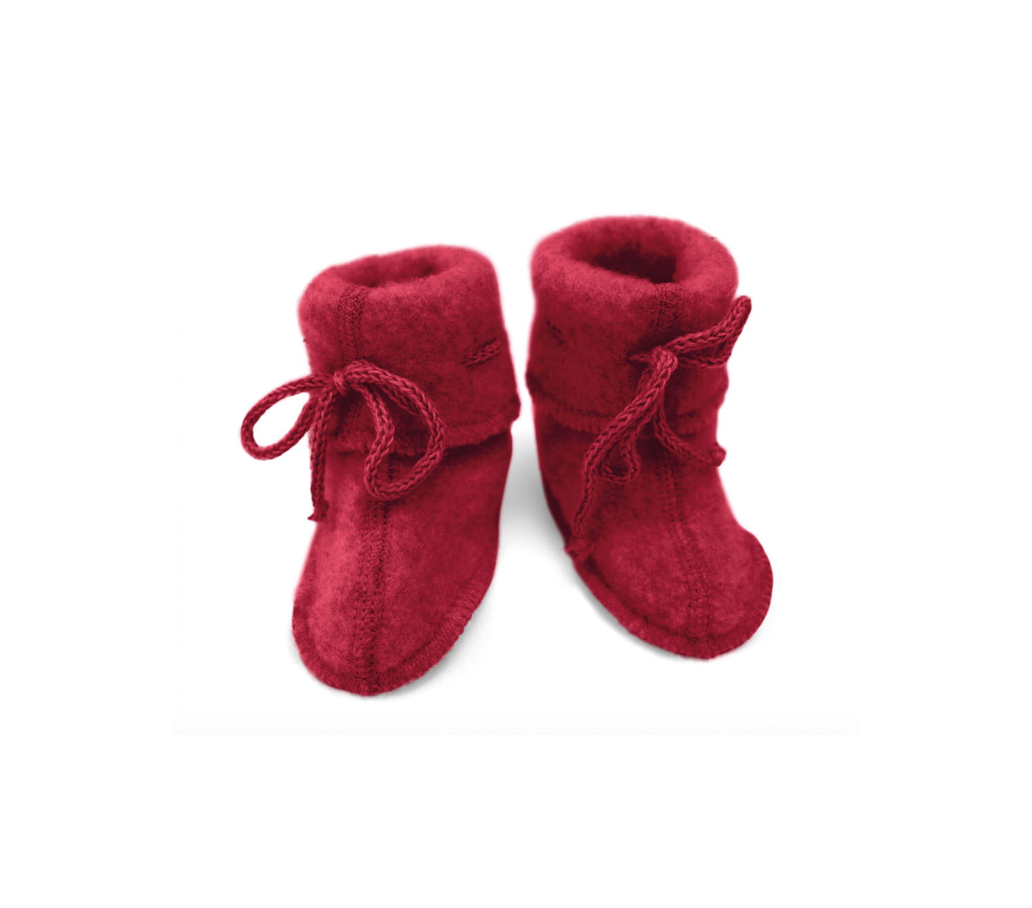 Buciki Engel z wełny marino posiadają sznurowania, a miękka elastyczna tkanina dopasowuje się do kształtu stopy dziecka, gwarantując wygodę i swobodę ruchów.