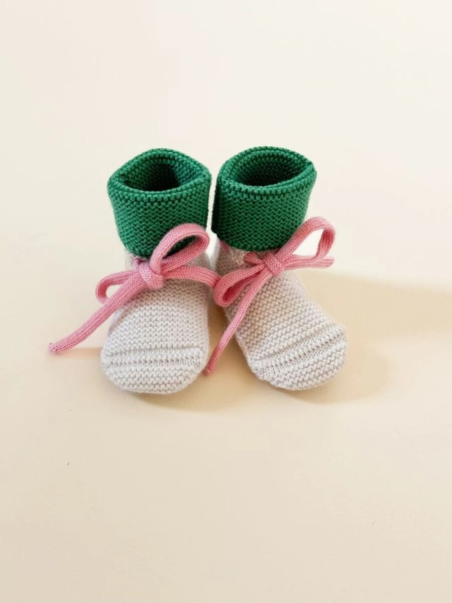 Buciki z wełny merino HVID Cream/Grass