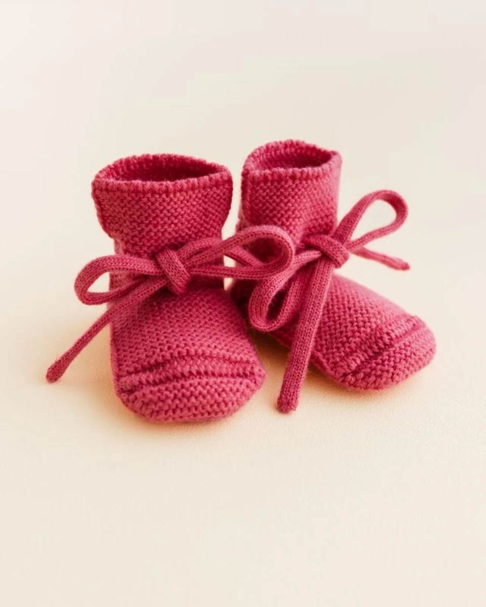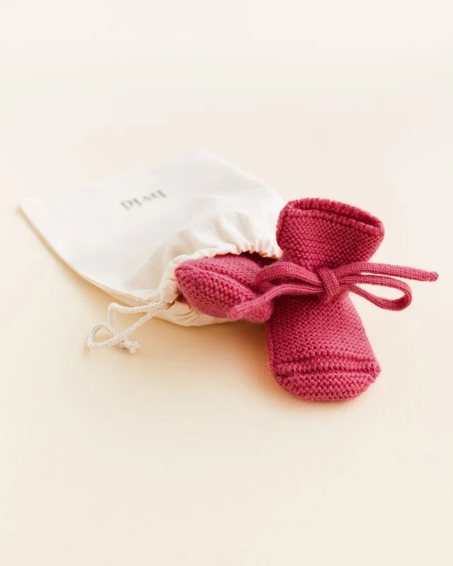 Wykonane z 100% ekstradelikatnej włoskiej wełny merino, buciki zapewniają naturalną termoregulację – ogrzewają w chłodniejsze dni i zapobiegają przegrzewaniu przez cały rok. Bezszwowa dzianina oraz przyszyte troczki zwiększają komfort noszenia i ułatwiają zakładanie. Całość zapakowana jest w estetyczny bawełniany woreczek, dzięki czemu buciki świetnie sprawdzą się jako prezent dla niemowlęcia.