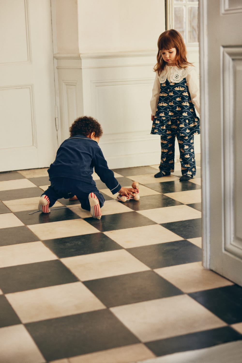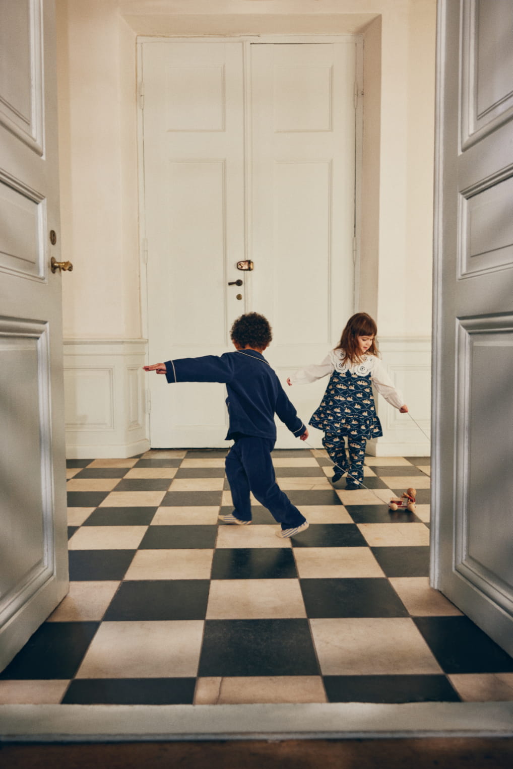 Drewniana Zabawka Do Ciągnięcia Bunny Music FSC Bell Boy Red Konges Slojd