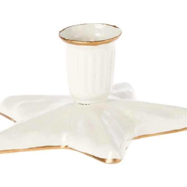 Świecznik ma ten sam piękny wygląd, co metalowa ozdoba w kształcie gwiazdy Maileg. Jest ręcznie malowany z drobnymi złotymi detalami. Pasuje do małych świeczek.