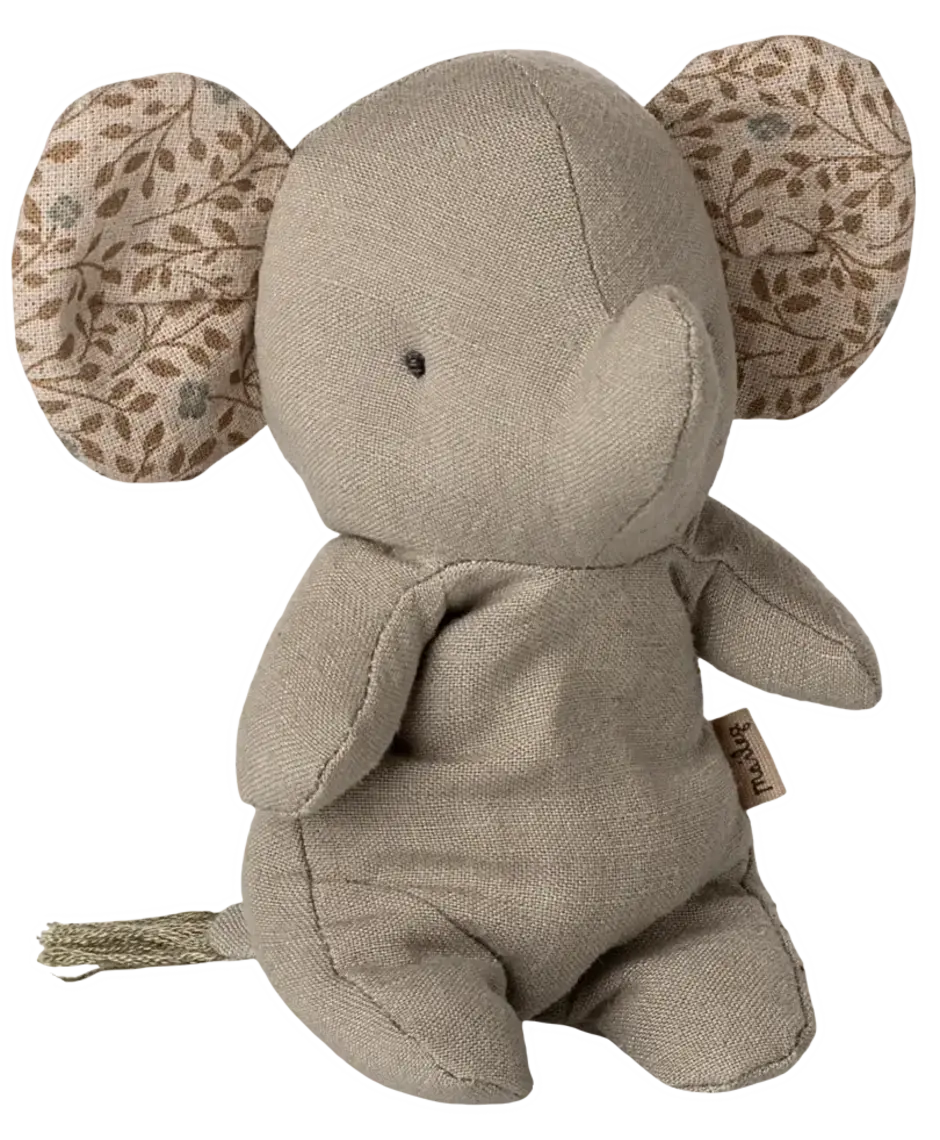 Słonik z kolekcji Maileg Safari Friends to urocza, miękka przytulanka wykonana z wyjątkowo delikatnej tkaniny. Jego kompaktowy rozmiar i cudowny design sprawiają, że szybko staje się ulubionym towarzyszem zabaw i podróży. Dzięki kuleczkom w dolnej części potrafi samodzielnie siedzieć, co dodaje mu jeszcze więcej uroku i ułatwia ustawianie na półce czy dziecięcym biurku.